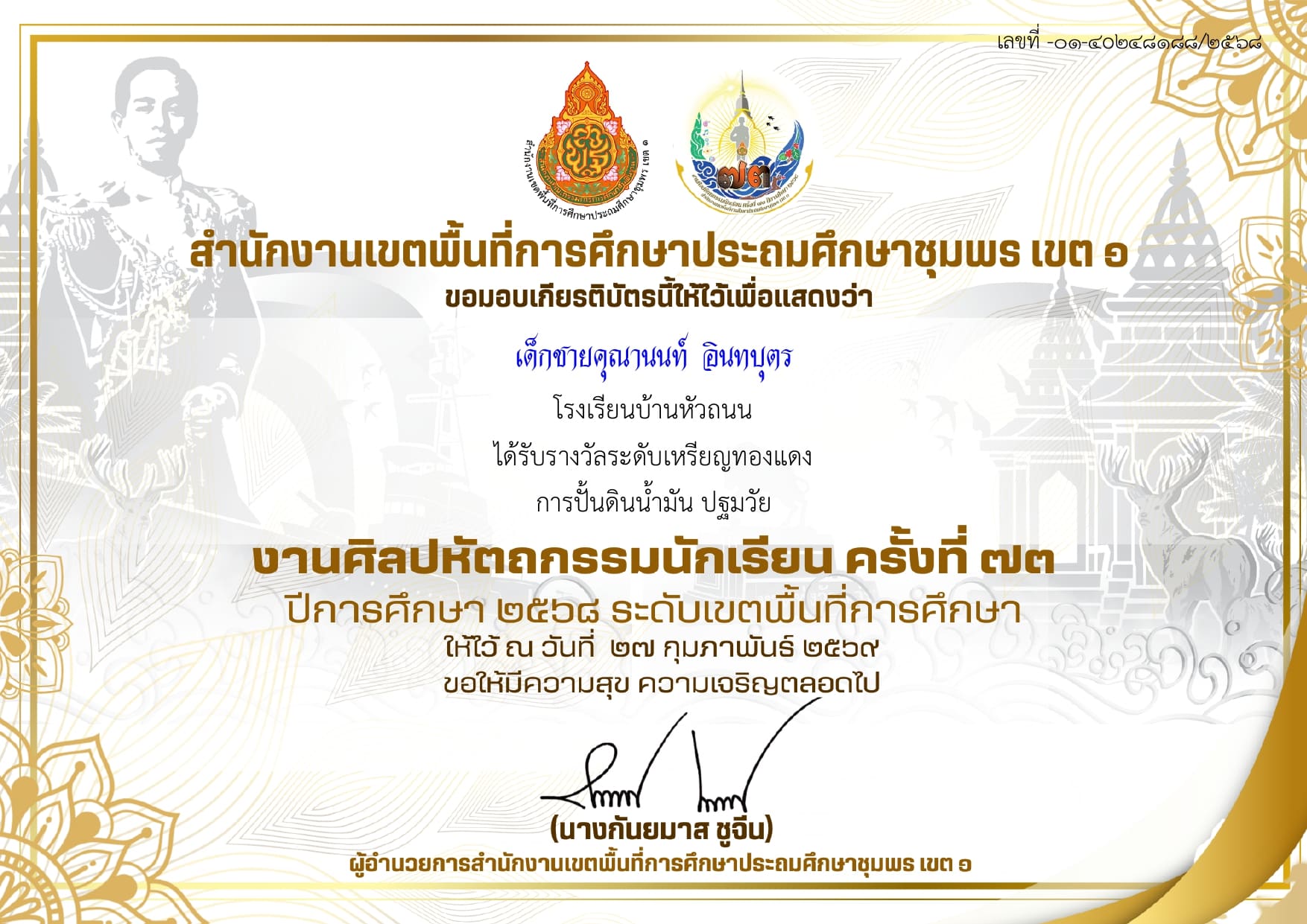 รางวัลระดับ เหรียญทองแดง การปั้นดินน้ำมัน ปฐมวัย