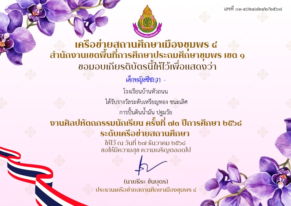 รางวัลระดับเหรียญทอง การปั้นดินน้ำมัน ปฐมวัย